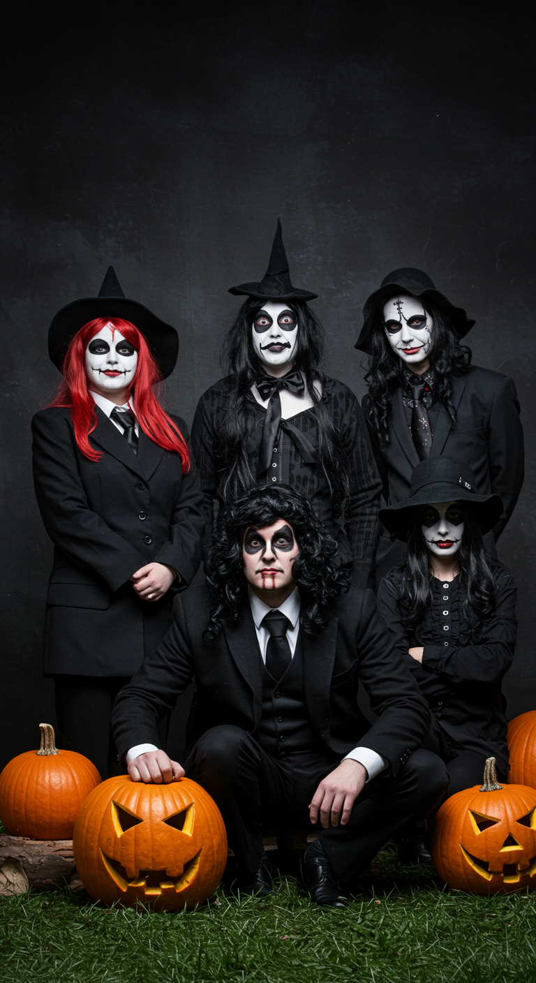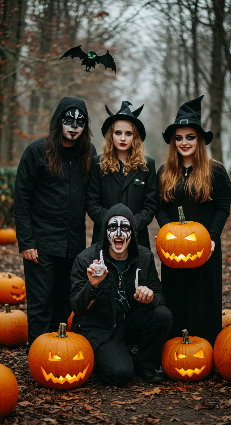 Embrace the darkness with a Gothic Sugar Skull crew! This costume idea is all about dramatic black attire, intricate makeup, and a touch of macabre elegance. It’s special because it’s both spooky and sophisticated, making it perfect for a more mature Halloween vibe. Plus, it’s easy to adapt to different styles. TIP: Focus on the details! Think lace, velvet, and statement jewelry to elevate your gothic look and make your group unforgettable.