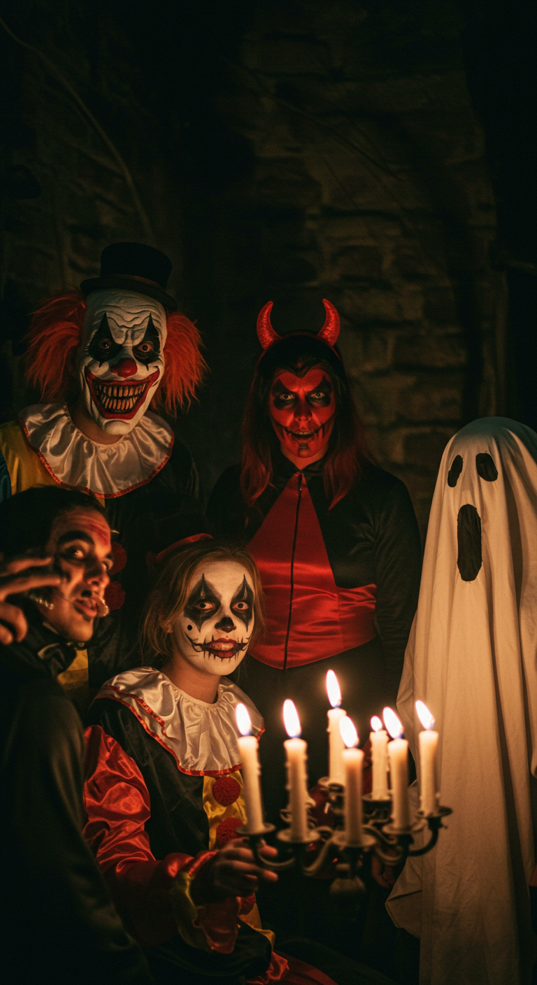 Embrace the eerie with a Creepy Clown crew! This costume idea is perfect for a group that wants to be truly terrifying. The combination of classic clown makeup with sinister twists creates a chilling effect that’s sure to make a statement. TIP: Don’t be afraid to go overboard with the makeup! The more exaggerated and unsettling your clown look is, the better. Think smeared lipstick, dark circles, and menacing grins.