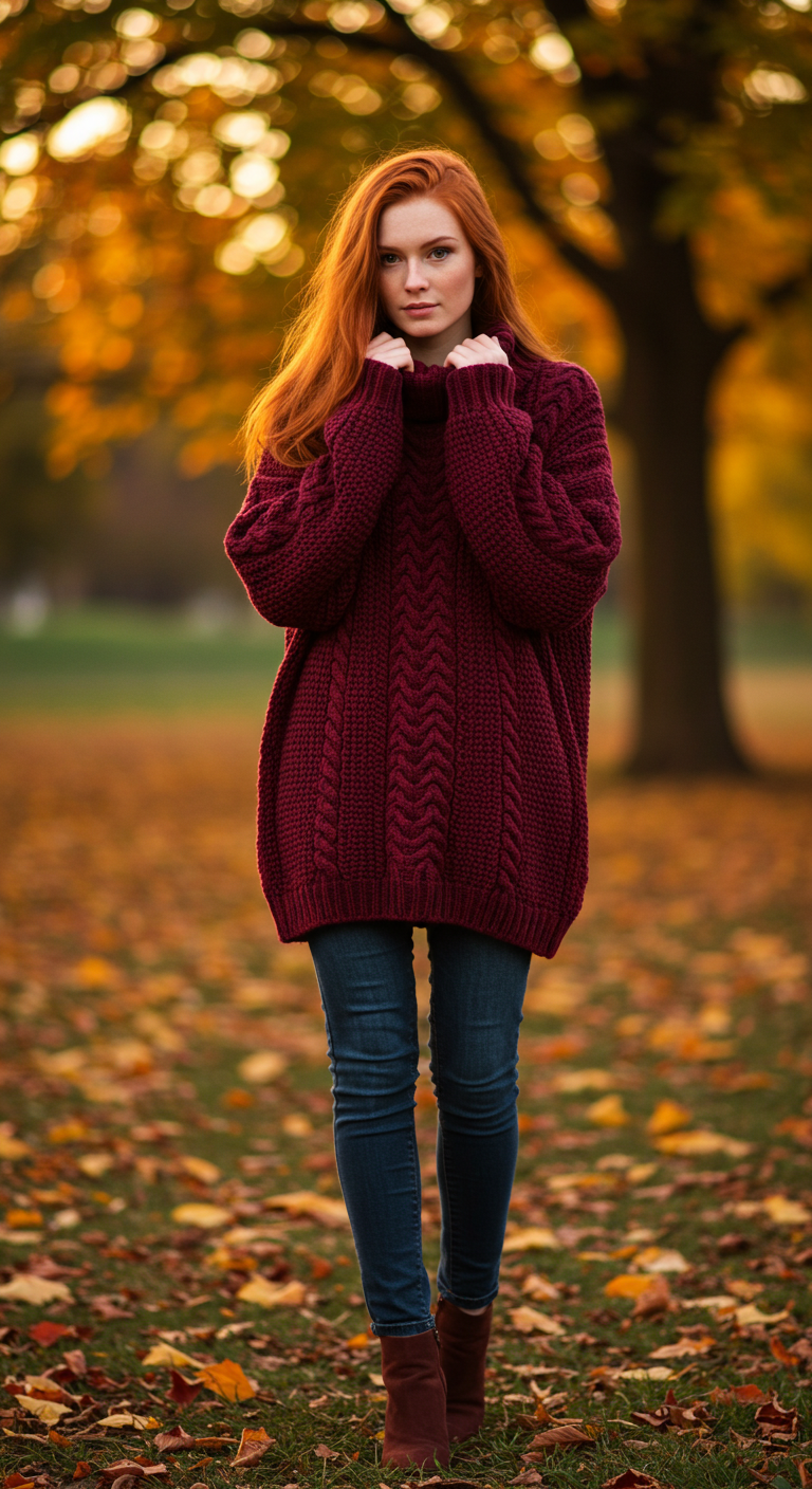Oversized Maroon Knit: Effortless Autumn Chic!