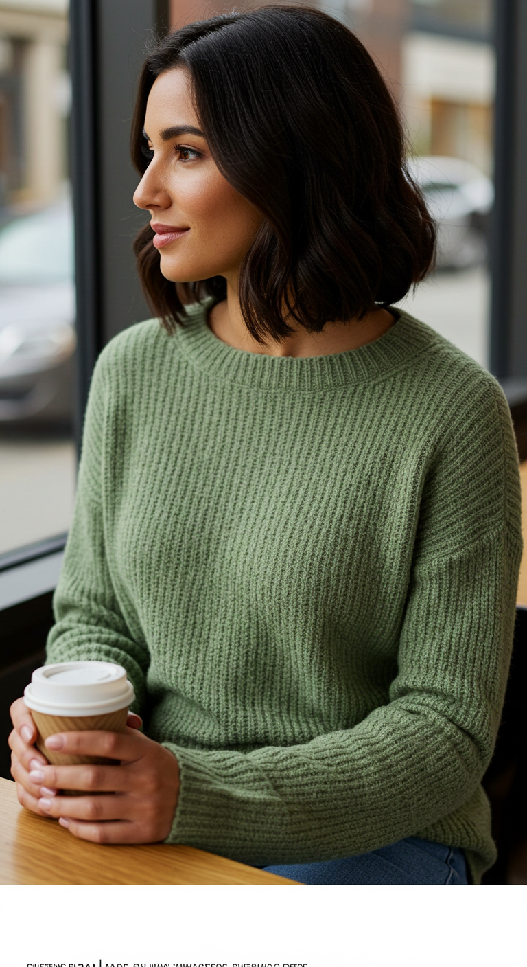 This olive green knit sweater is a must-have for your autumn wardrobe! The soft, muted color is incredibly versatile and easy to style. The simple design makes it perfect for layering or wearing on its own. Style tip: Pair it with dark wash jeans and sneakers for a casual look, or dress it up with a skirt and boots. Perfect for coffee dates and cozy days!