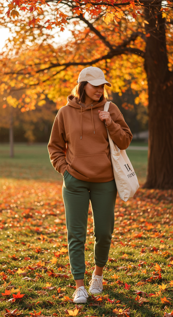 Combine the sweetness of caramel with apple-picking practicality. Wear a caramel-colored hoodie with apple-green joggers and white sneakers for the ultimate in cozy-chic comfort.